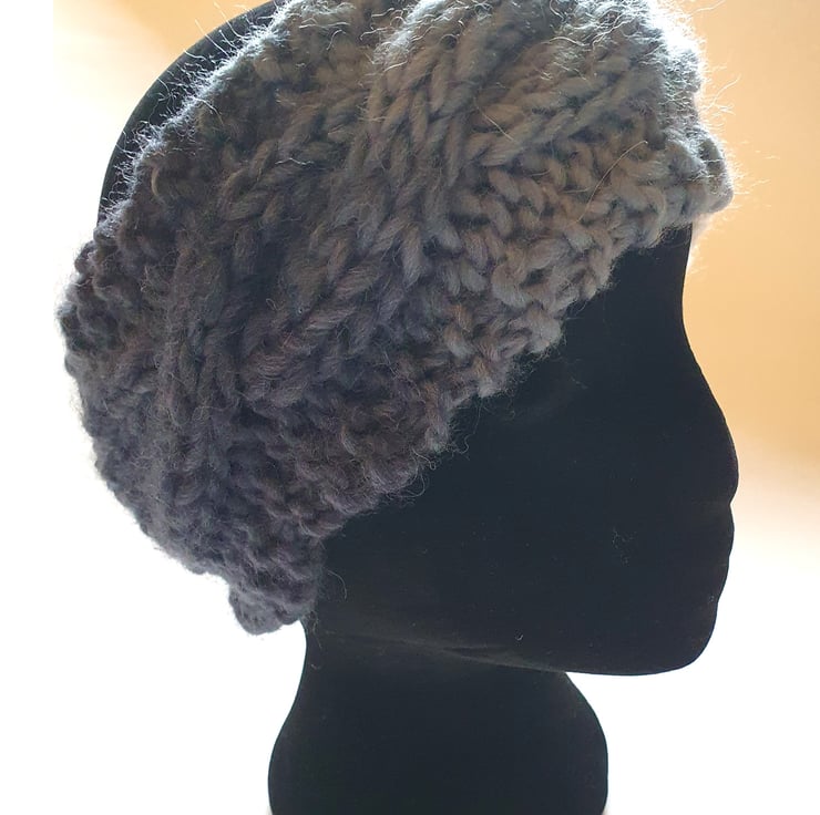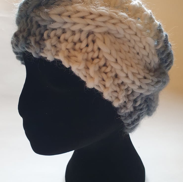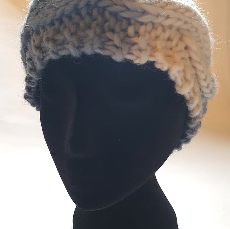 A joy to knit and to wear, they keep your ears warm while letting your head breath! They are approximately 46-48cms unstretched and about 10cms deep.