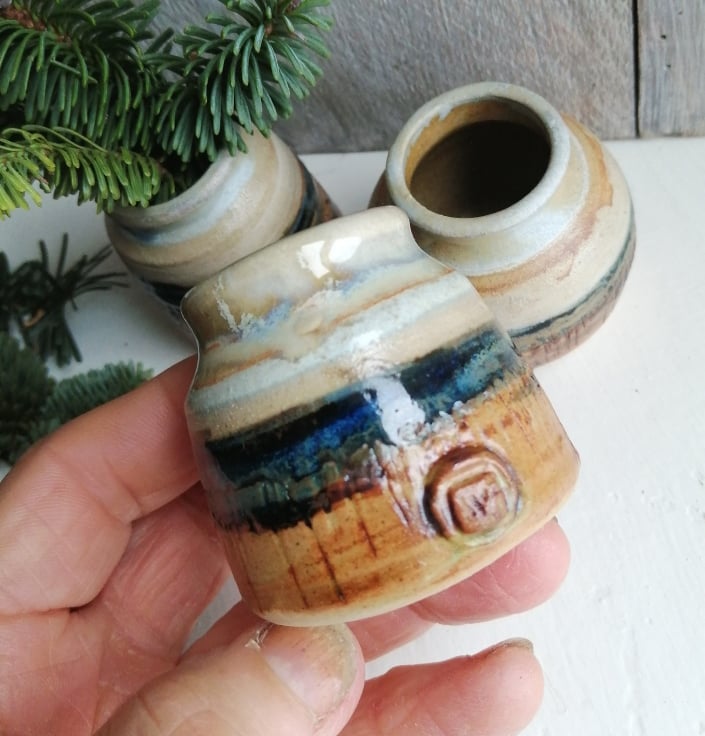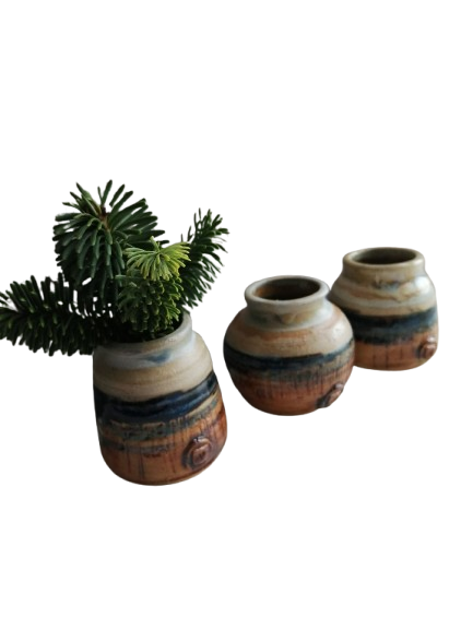 These small Bud Vases are designed as if a three dimensional, free standing painting.