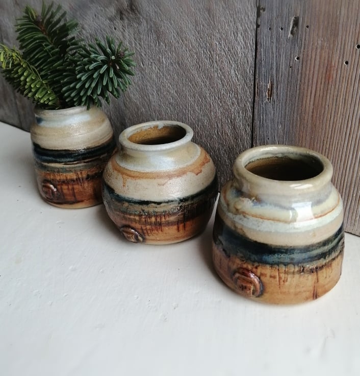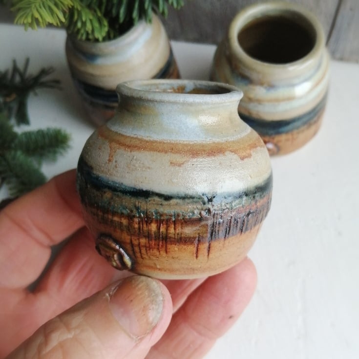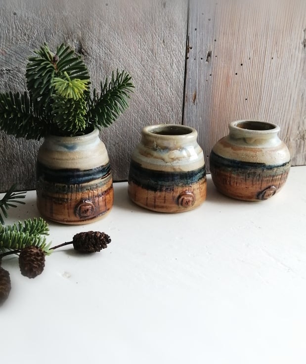 This set of wheel thrown Bud vases all start life as the same weight of clay.