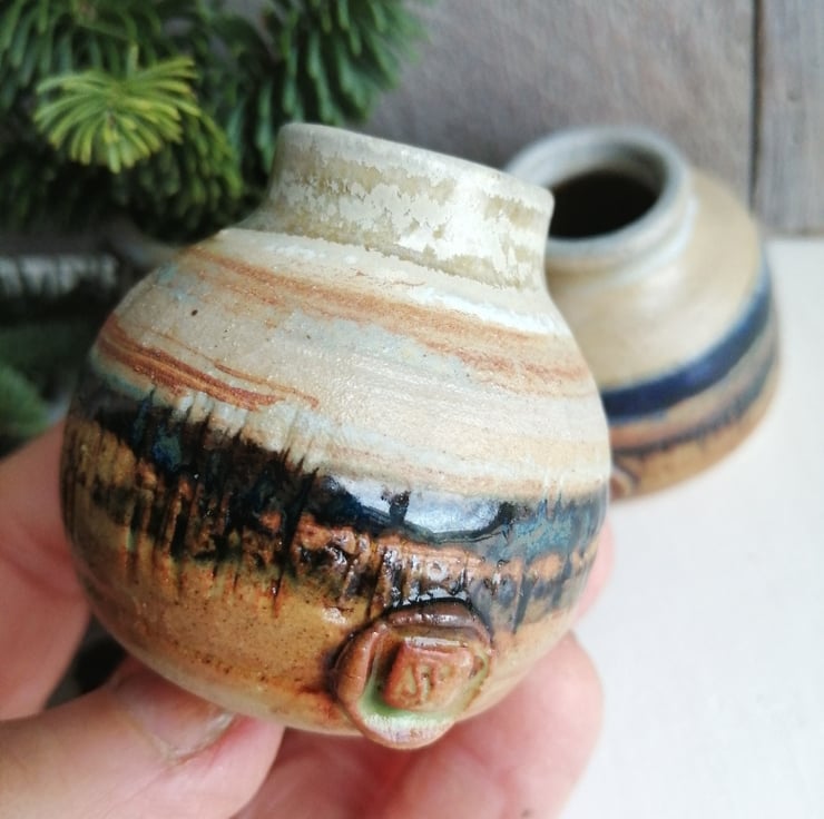Each one thrown with the same weight of clay, but each one unique, the shapes inspired by a collection of old ceramic and glass ink bottles that I have.