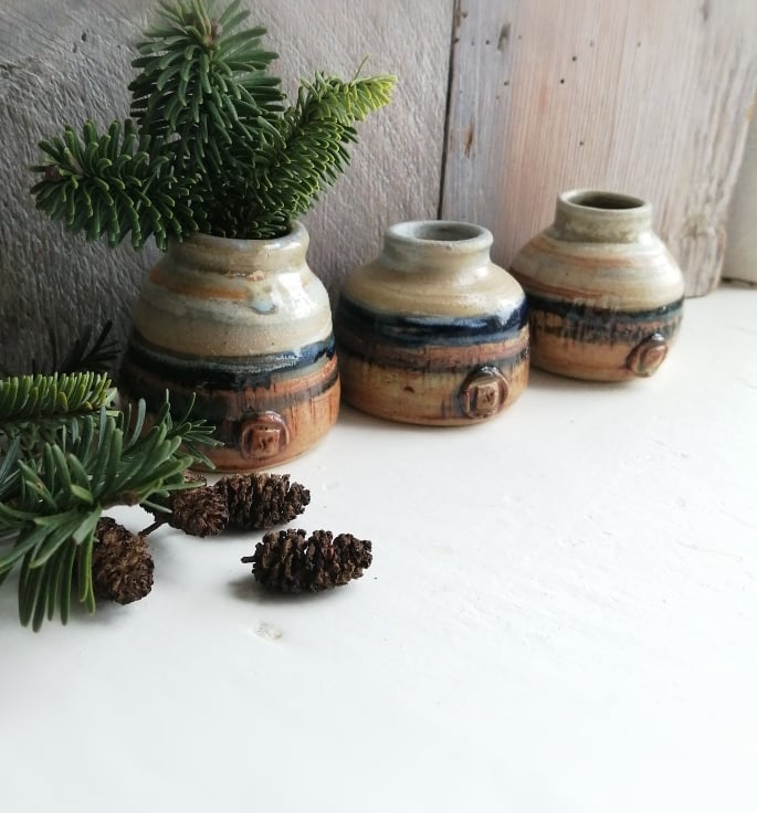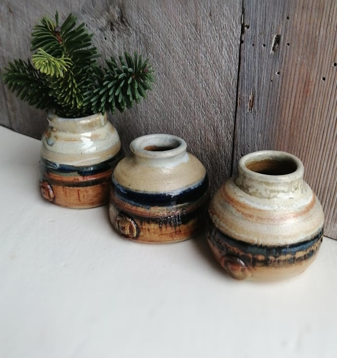 This set of wheel thrown Bud vases all start life as the same weight of clay.