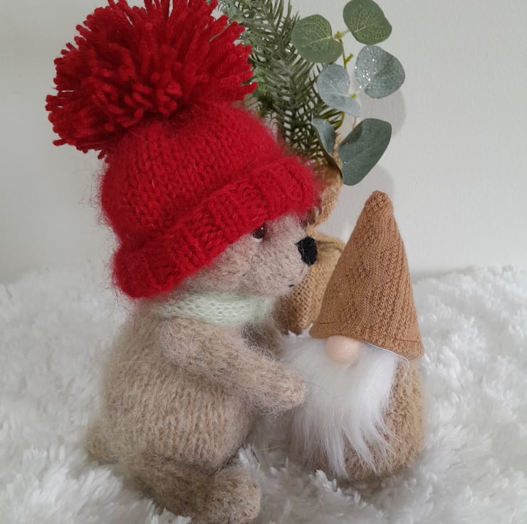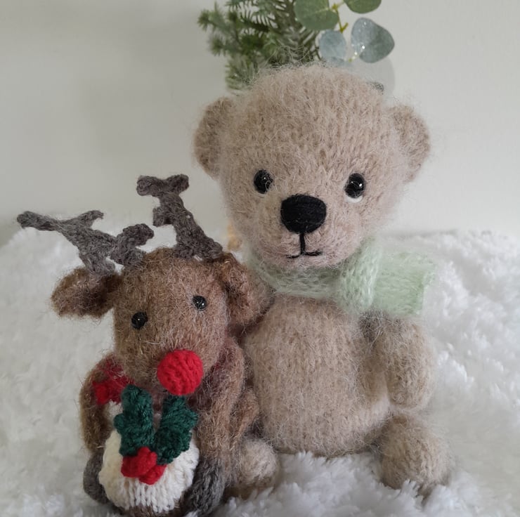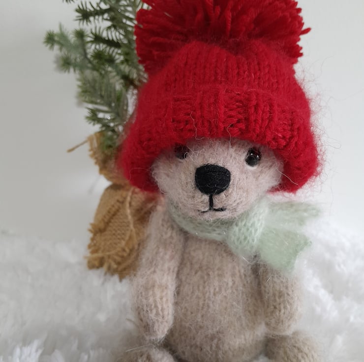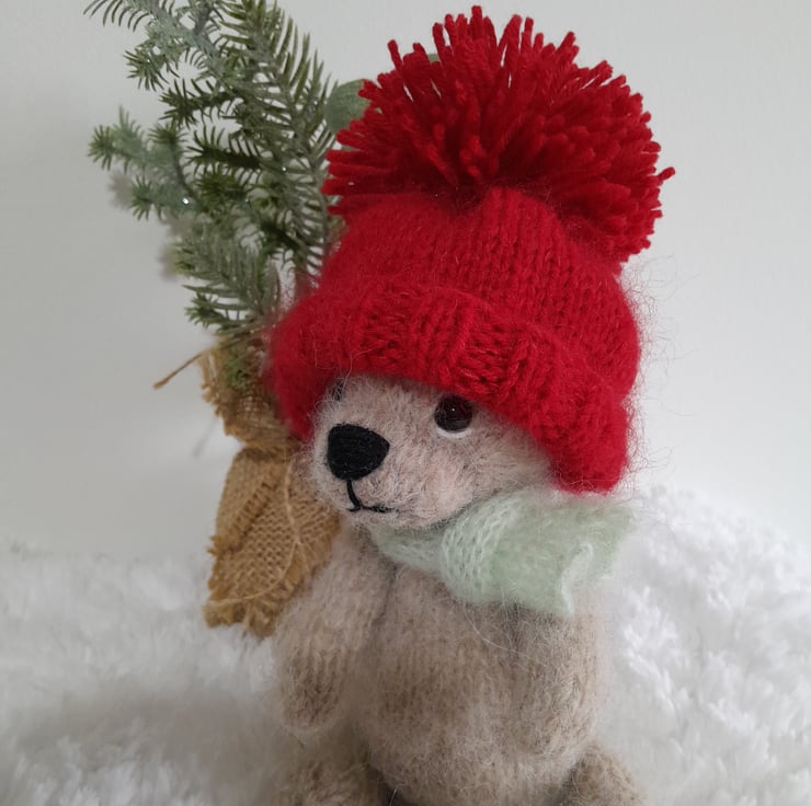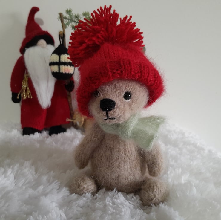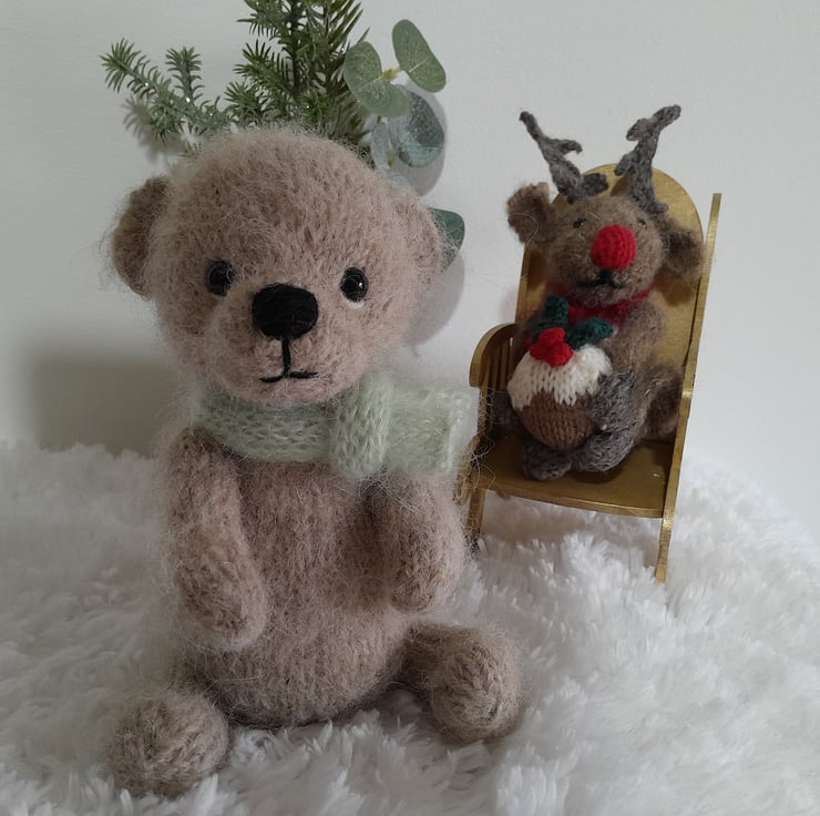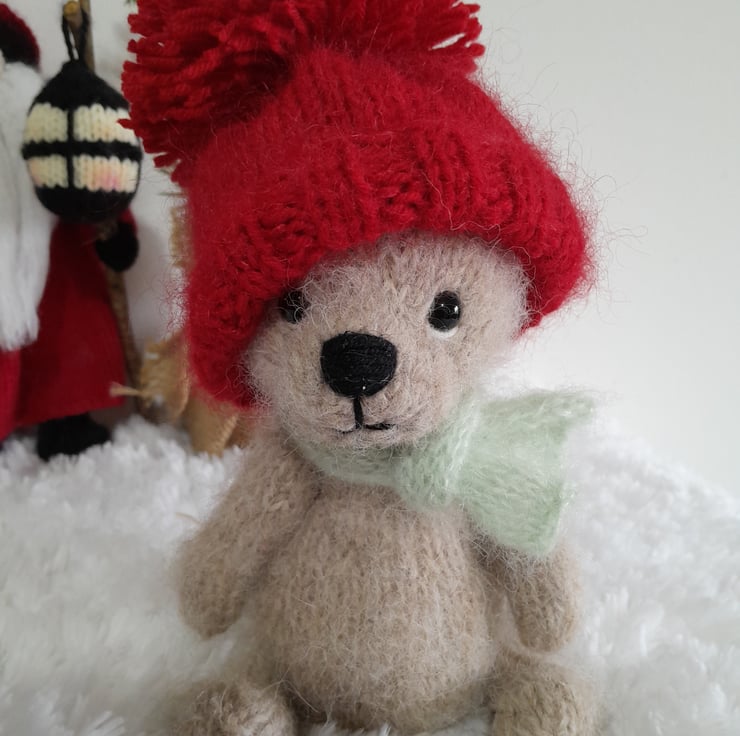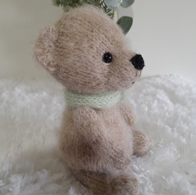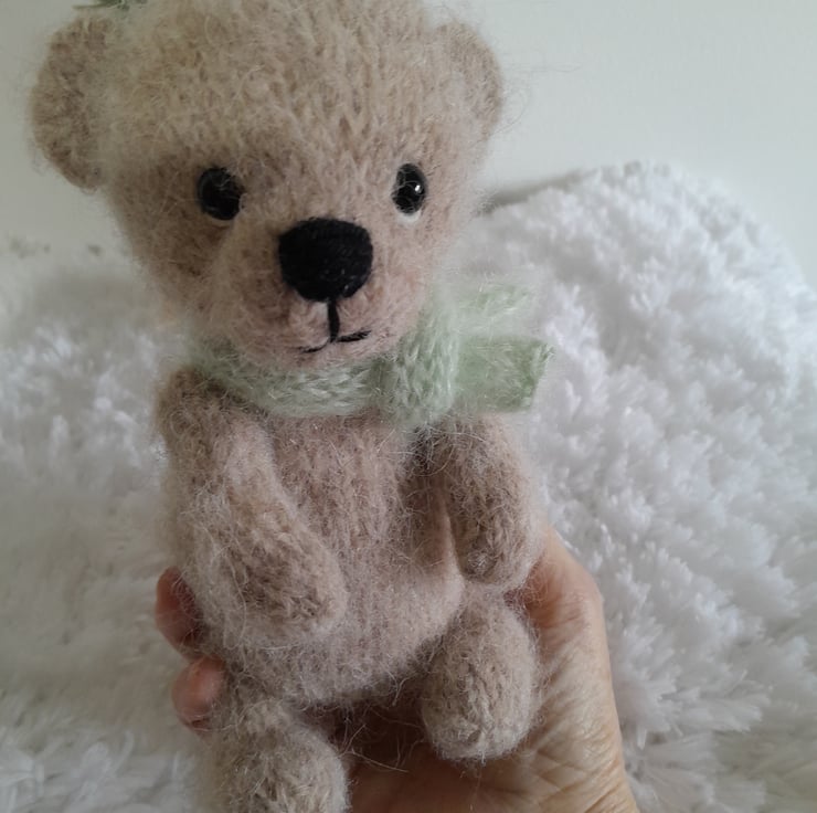 This traditional little teddy bear is knitted using a beautifully soft mohair yarn.
