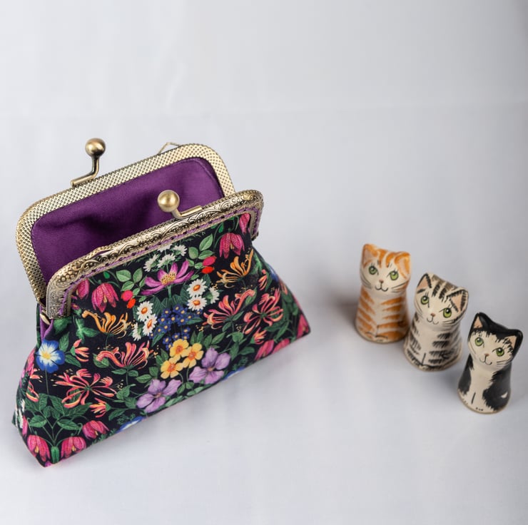 A compact and pretty frame purse made with Liberty of London tana lawn with room for cash and a card or two.