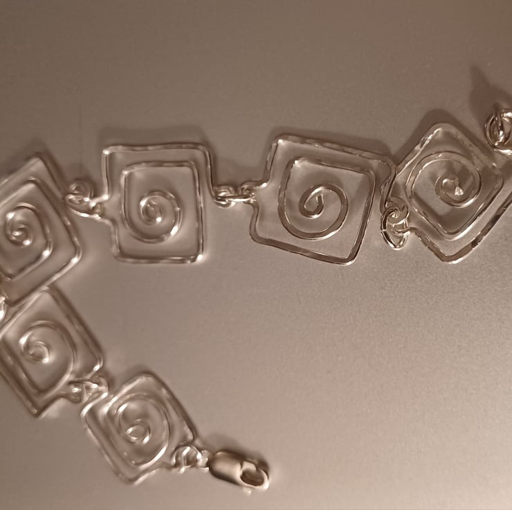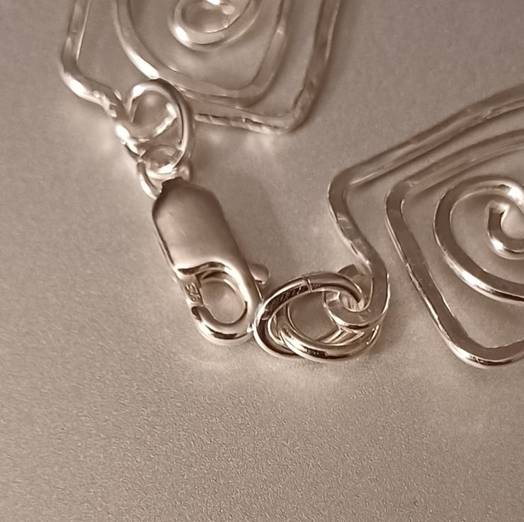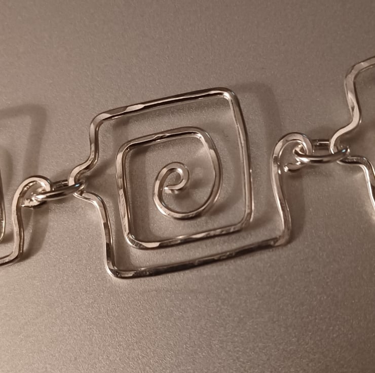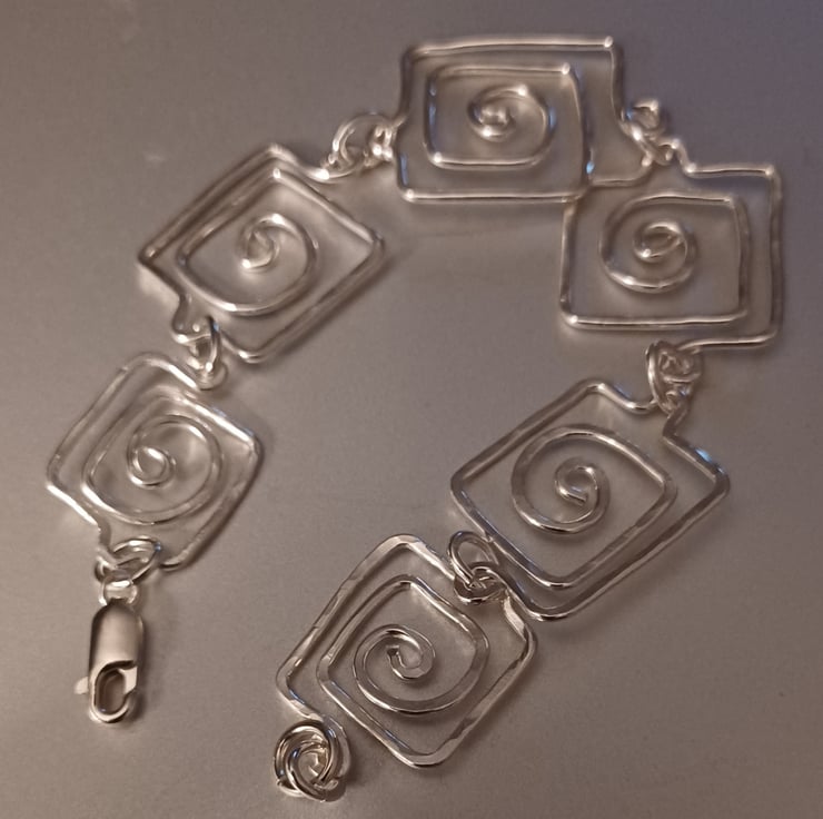 A handmade bracelet made from six sterling silver square spirals, which have been hammered to add texture and sparkle to the silver. The spirals are between 1.5cm and 2cm square