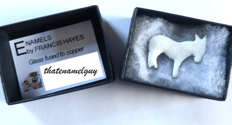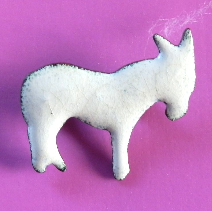 To make the donkey I built up layers of white enamel on the copper base, firing each layer as I went. No4 simply because there is an earlier listing for white donkey No3 and I did not want a donkey fight in the listings.