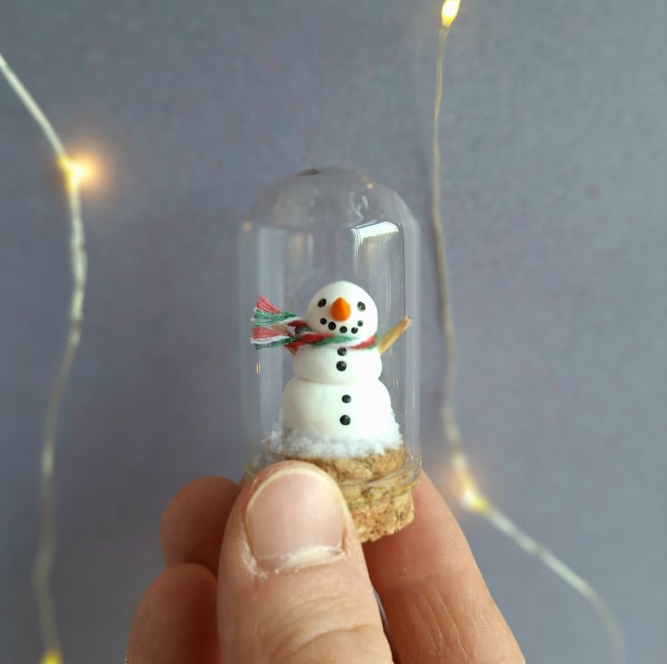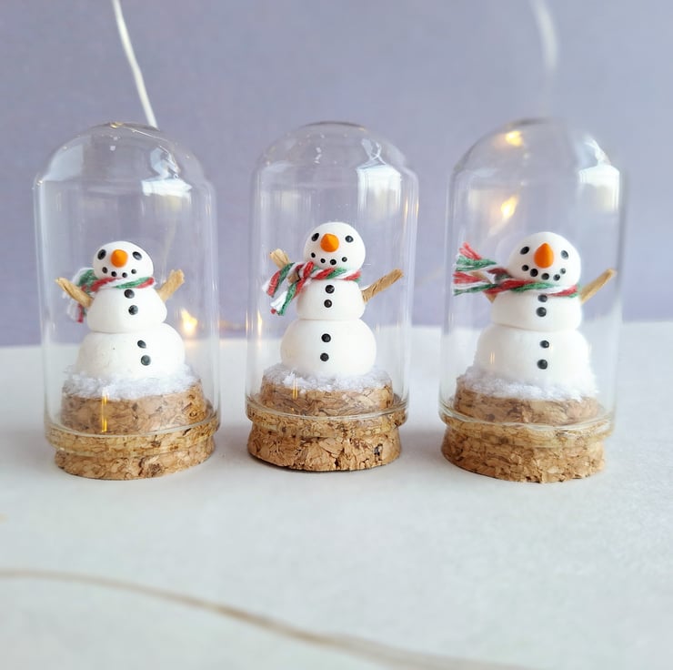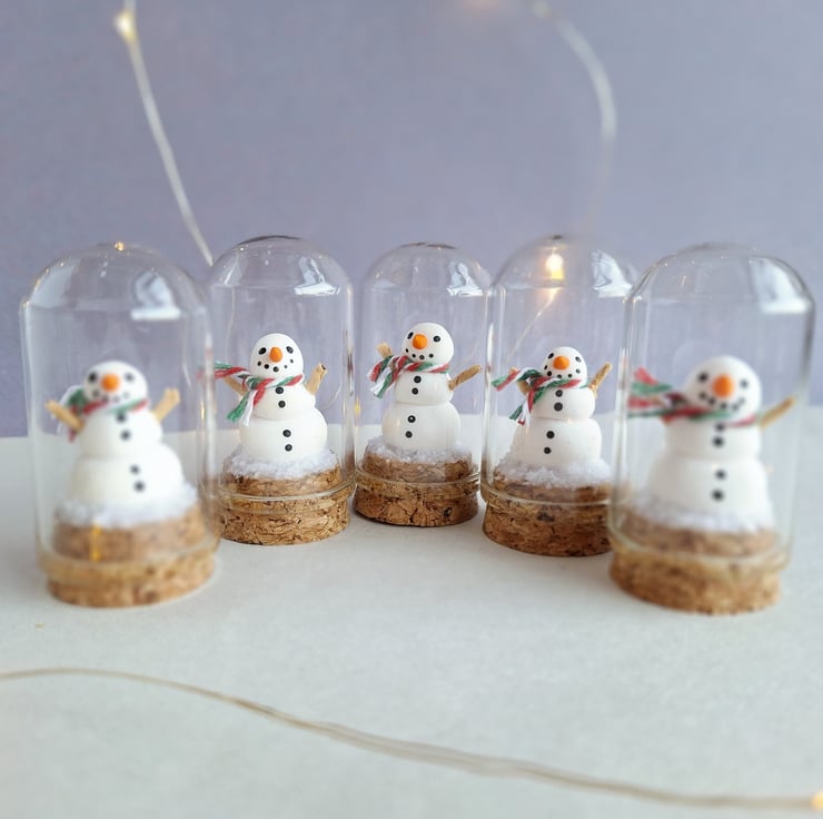 Tiny Snowmen! Each handmade from polymer clay, and sealed inside a cute glass jar for safekeeping.