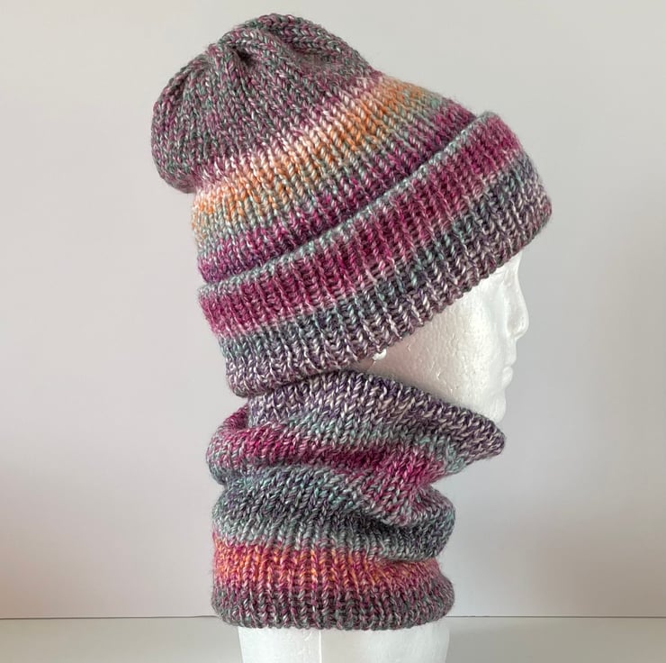 Matching unisex beanie and neck warmer. Knitted using a soft acrylic yarn that will keep you warm and comfortable all day.