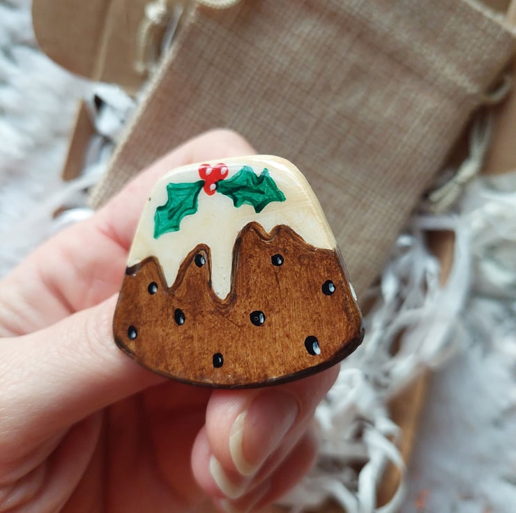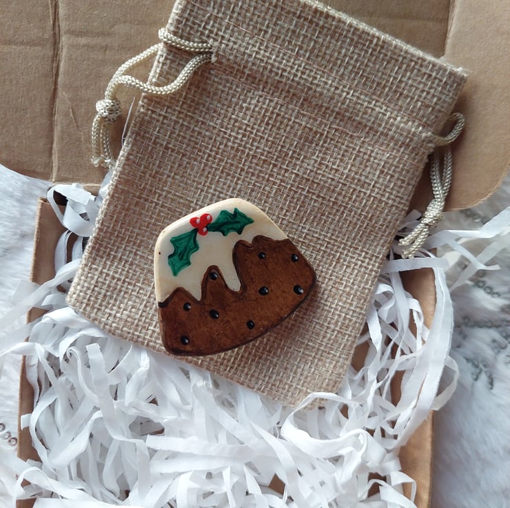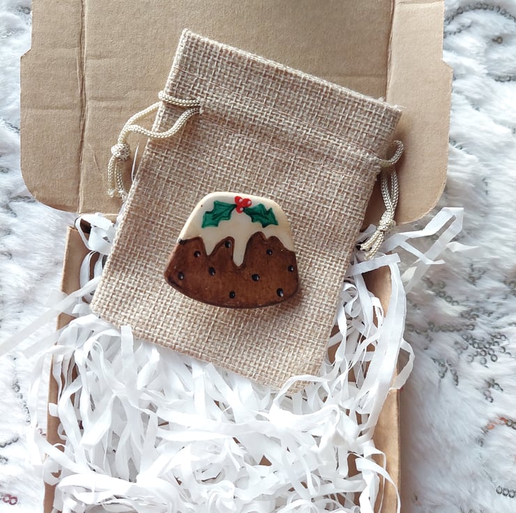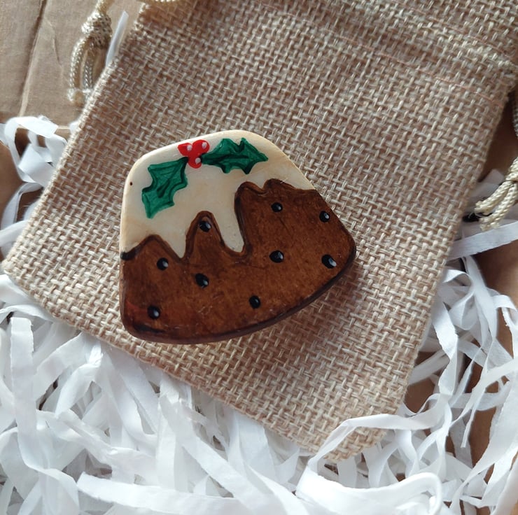 This Christmas pudding brooch makes a fun, festive accessory to any outfit this holiday season.