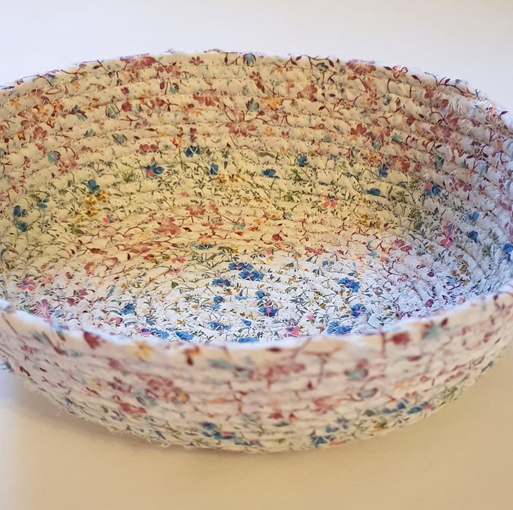 These baskets take a long time to make, but I find them addictive - this one, being subtle colours, would work well in any room - for collecting small things in a kitchen, keys in a hallway or hair accessories, makeup or costume jewellery in a bedroom. Give as a gift to a new mum filled with little things for a baby (or pamper items for the mum herself!) or fill with sweets or wrapped biscuits for a teenager.