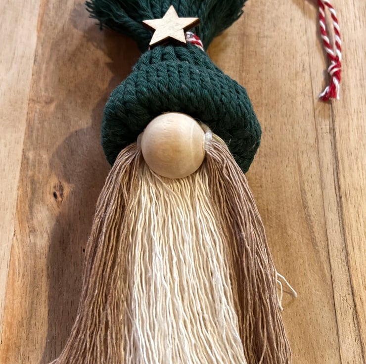 Adorable macrame hanging gnome tree decoration! The perfect gift for yourself or a loved one this Christmas to decorate the tree!