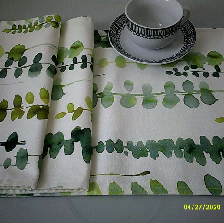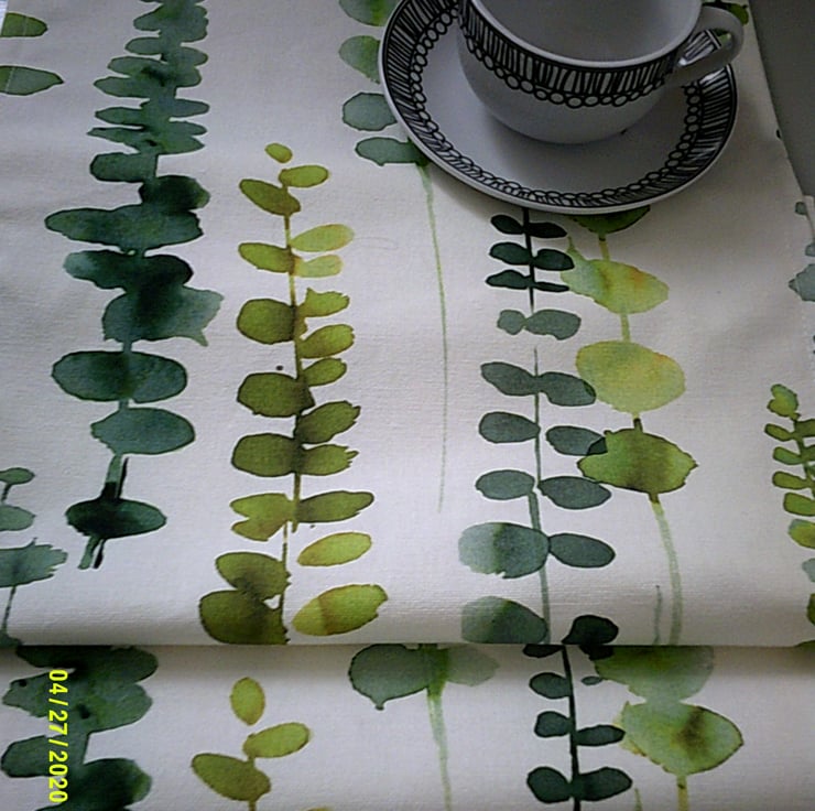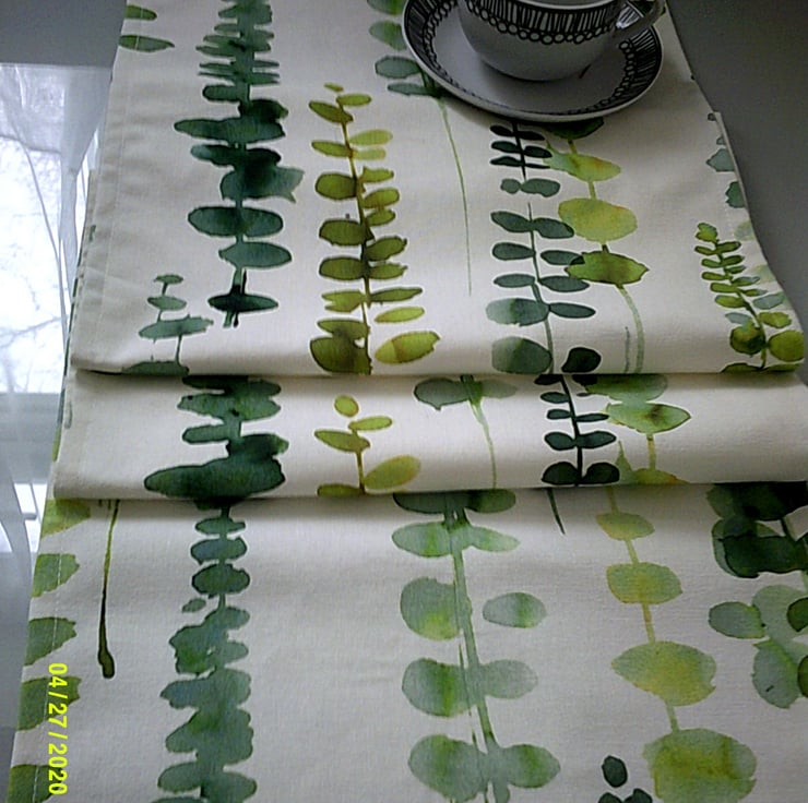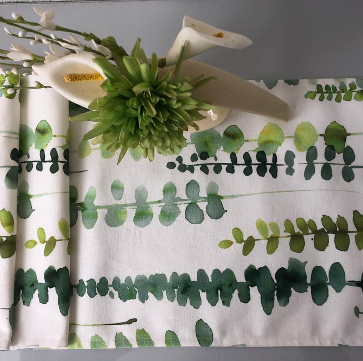 Woodland Table Runner Green Ferns Digitally Printed Watercolour