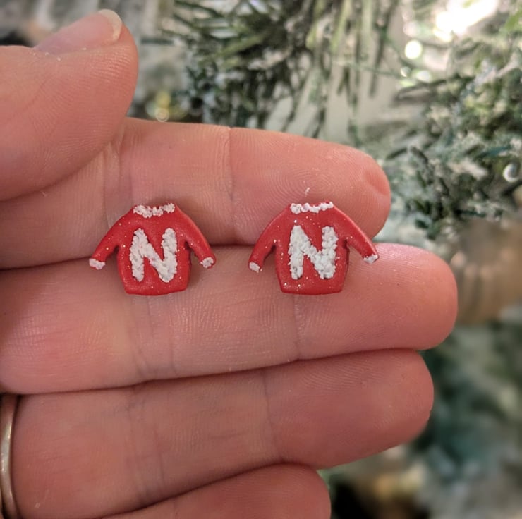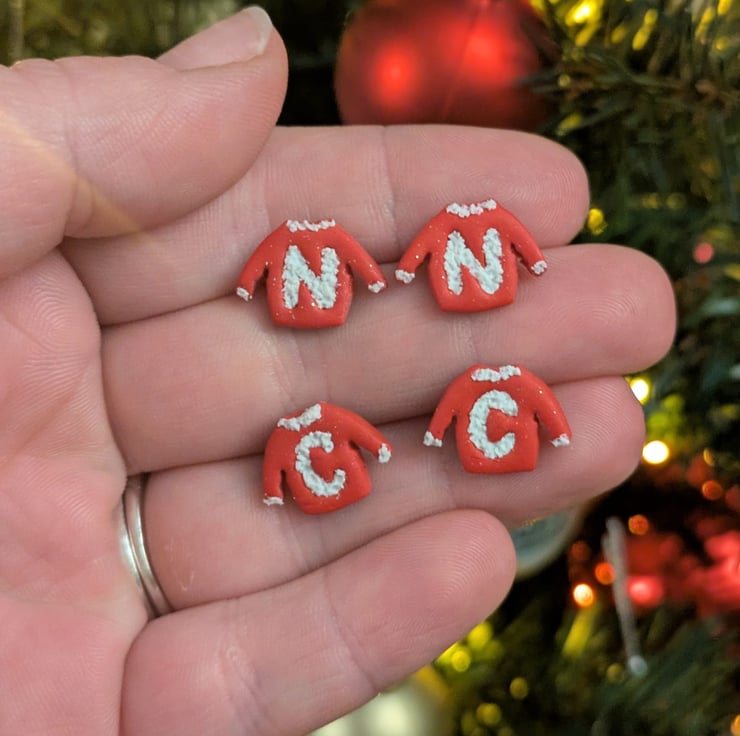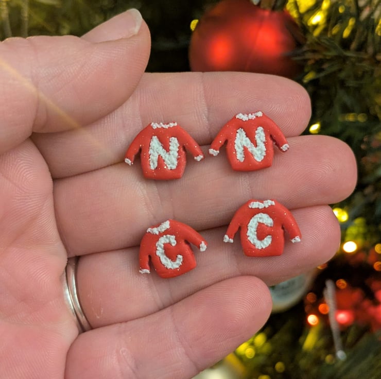 Add a personal touch to your festive look with these Personalised Christmas Jumper Polymer Clay Earrings. Each pair features your initials on a cute jumper, with the option to customise the jumper's colour.