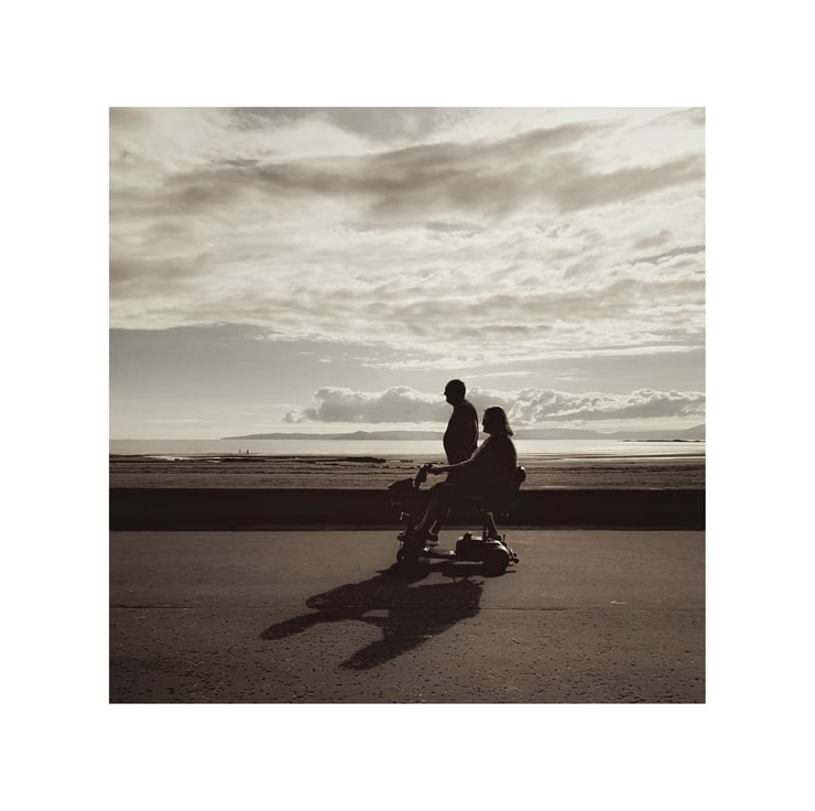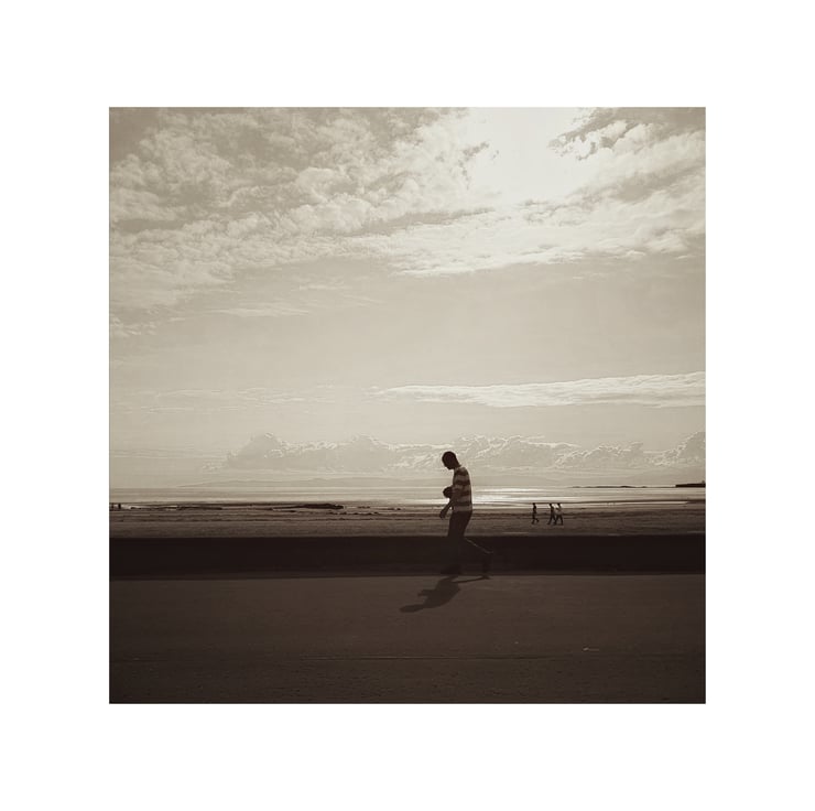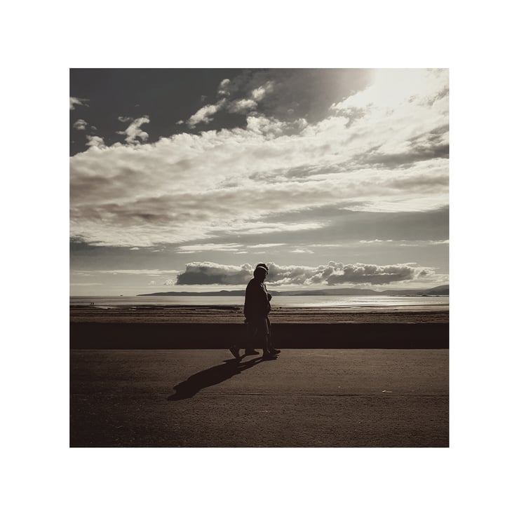 An eclectic group of fine art photographs of people walking along Ardrossan Promenade, Ayrshire Scotland.