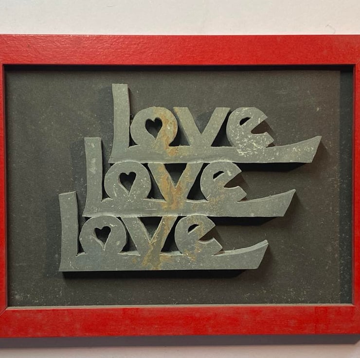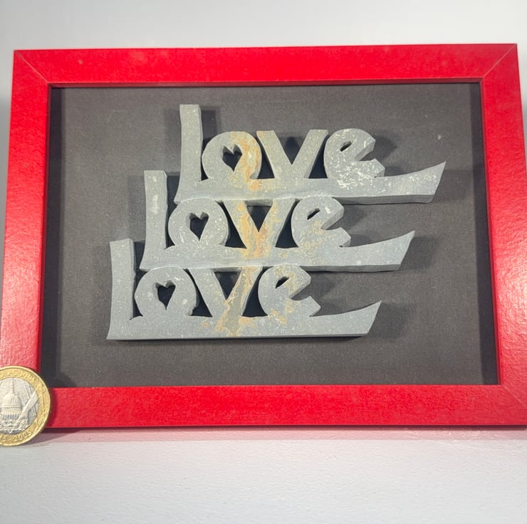 Hand cut Devonian Mudstone, Love Love Love, framed and ready to hang!