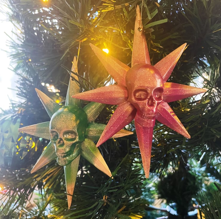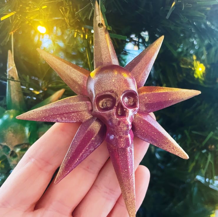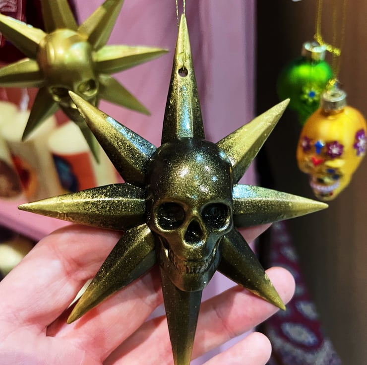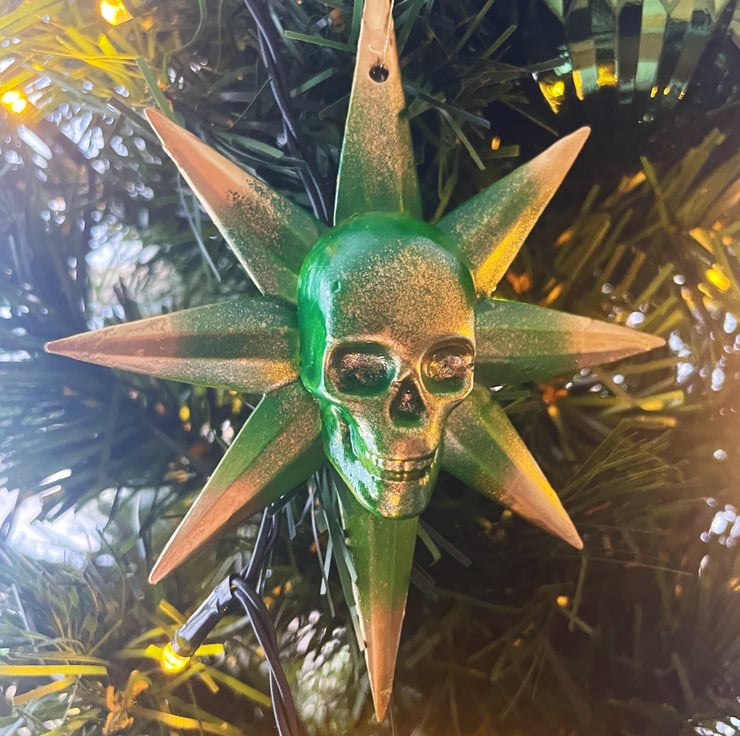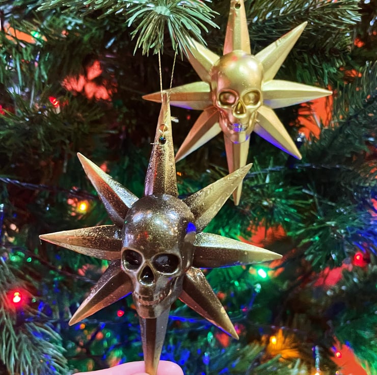 Add some gothic decor this Christmas with these unique handmade gothic skull star Christmas tree decorations