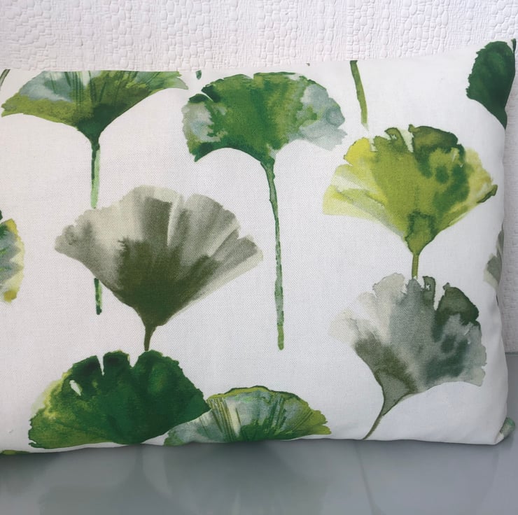 Rectangular Pillow Cover in a Tropical Green Ginkgo Pattern