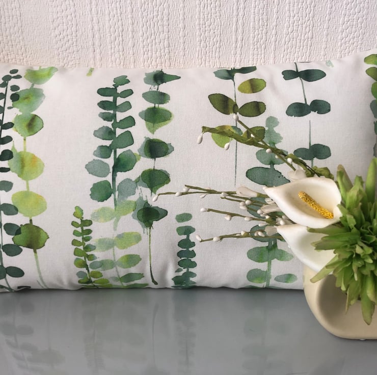 Rectangular Pillow Cover in a Tropical Green Fern Pattern