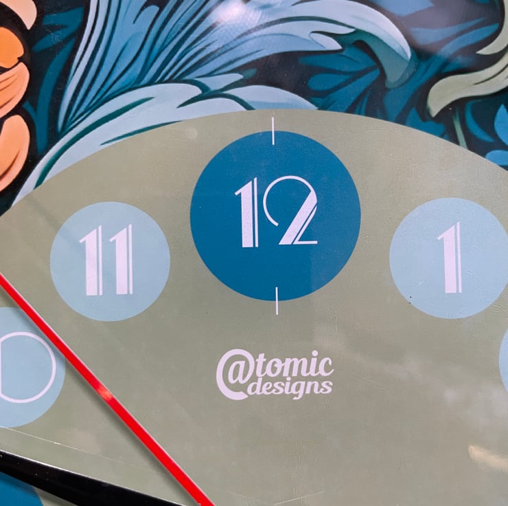 'The Windsor' Art Nouveau style 25cm wall clock is handmade to order in our Buckinghamshire studio. Made with care and using a delicate process, our craftsmanship takes time to achieve the perfect finish. Our designs are unique and designed by us, registered to Atomic Designs, so you can only purchase these wonderful timepieces from our Folk store or our own website. We make each item by hand, with care and skill, so no two items will be exactly the same. They may have small differences and each clock is given a unique number, allowing you and us to authenticate our clocks.