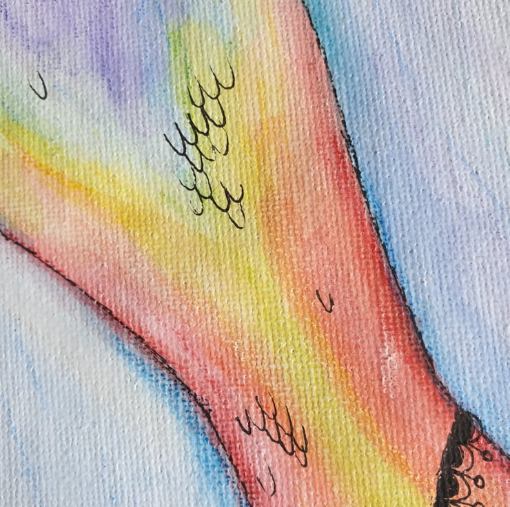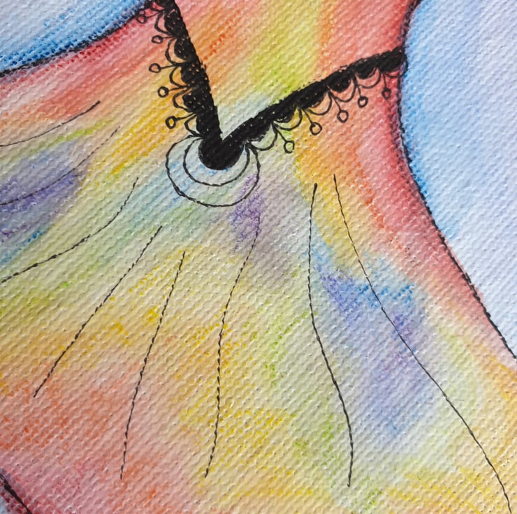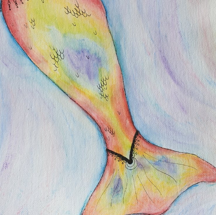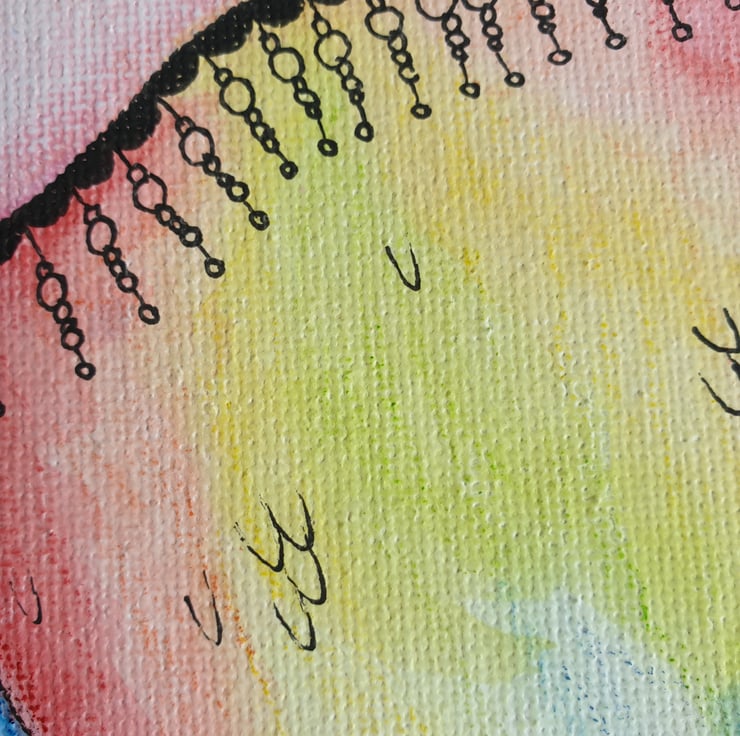 This piece has been created using a mixture of watercolour pencils and paint in beautiful pastel shades. The image was hand drawn then coloured.