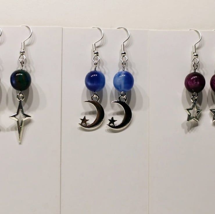 these are 3 different styles of spacegalaxy earrings handmade by me