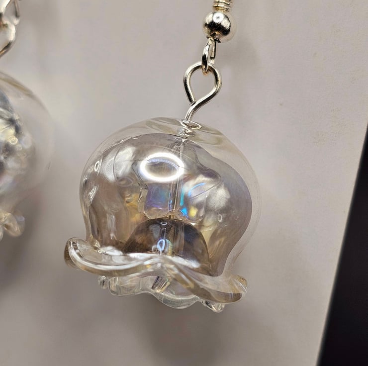 iridescent jellyfish earrings, handmade cute dangle drop earrings, glass