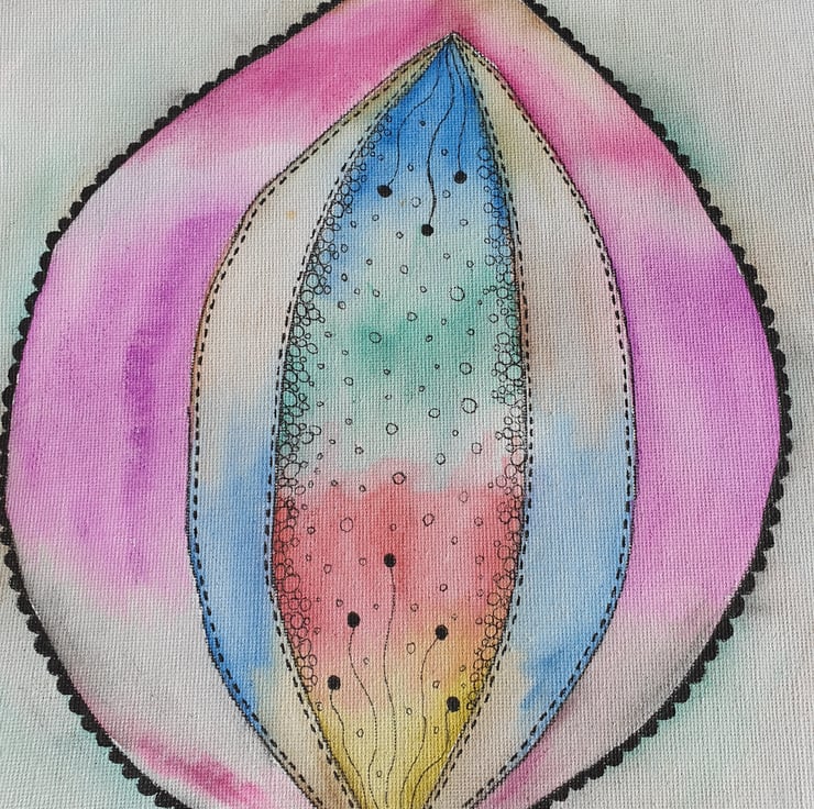 This piece has been created using a mixture of watercolour pencils and paint in beautiful pastel shades. The image was hand drawn then coloured.