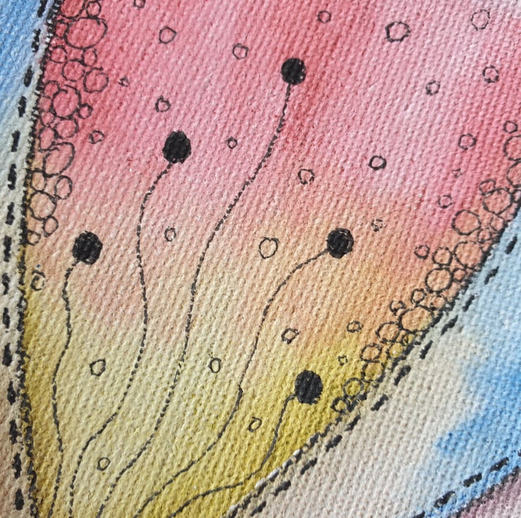 I enjoy creating with inktense pencils as the colours are so bright and mix so well that I feel the need to add loads and loads of colours. Creating this lovely rainbow effect is very enjoyable.