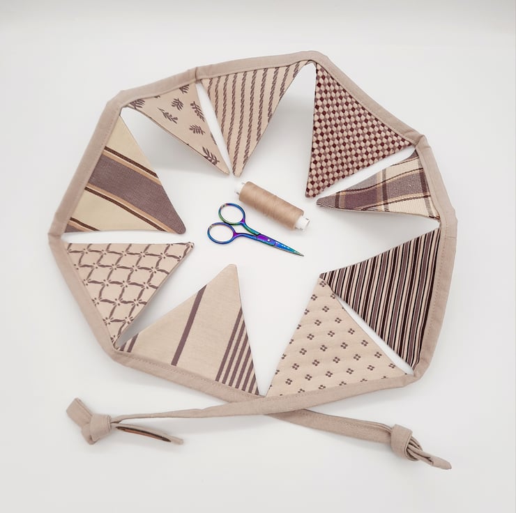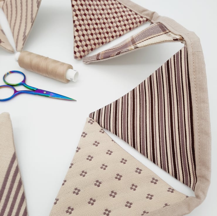 Mauve and taupe 80" mini bunting, free uk delivery.