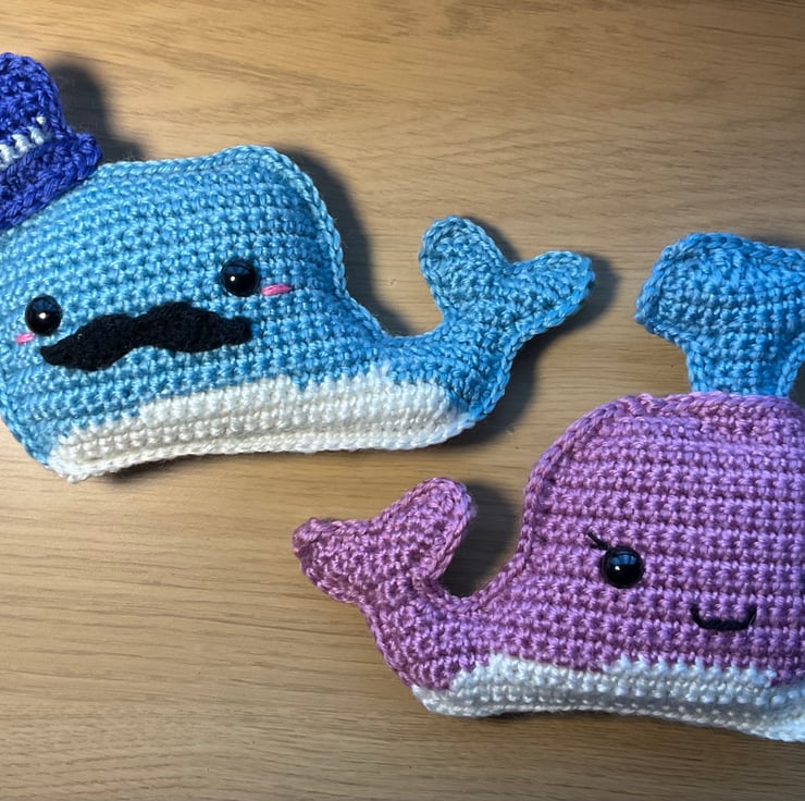 Hand made crochet pair of whales.