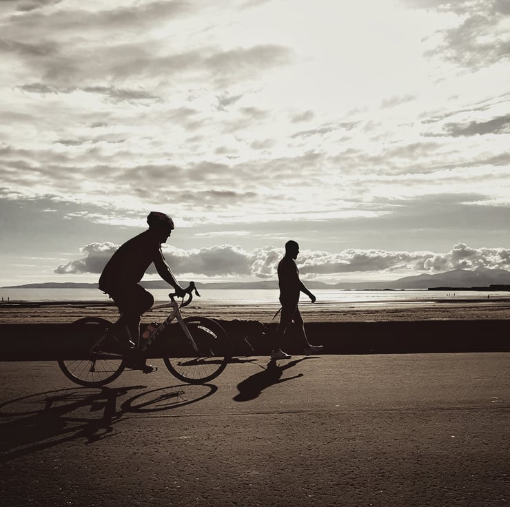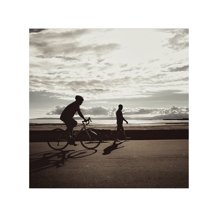 Photograph of people walking along Ardrossan Promenade, Ayrshire Scotland.