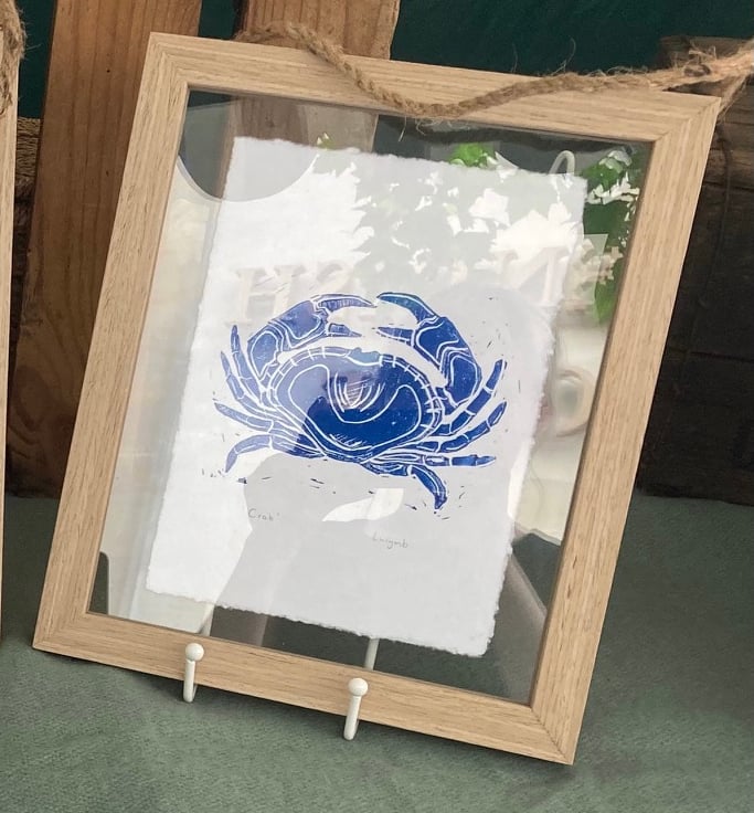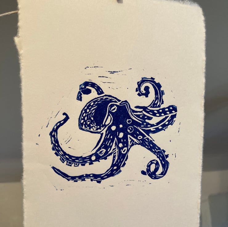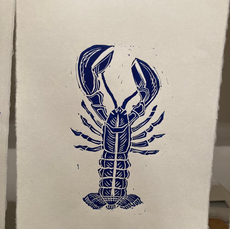 Hand printed Lobster, Crab, Mackerel and Octopus.