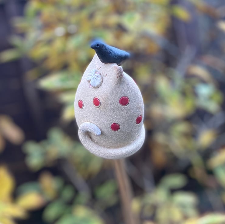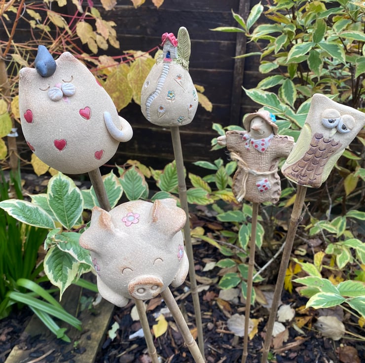 My cane toppers serve two purposes. First of all the usual one… to make your garden canes stand out more and prevent a nasty accident, also to provide much-needed colour and interest to your borders during the winter months when all the flowers have gone away. Frost-proof so they can stay out in your garden all year round.