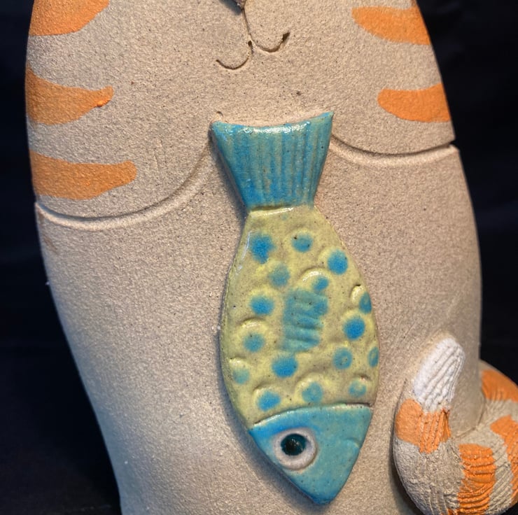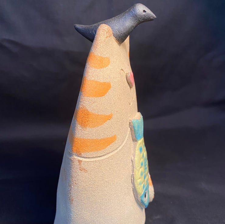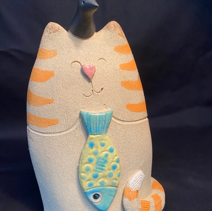 Dressed smartly in his marmalade striped suit and kipper tie, this cat is happy to stay inside in the warm with you or sit outside in the garden all year round, perhaps perched next to the garden pond if you have one to keep an eye on the fish for you.