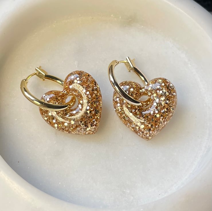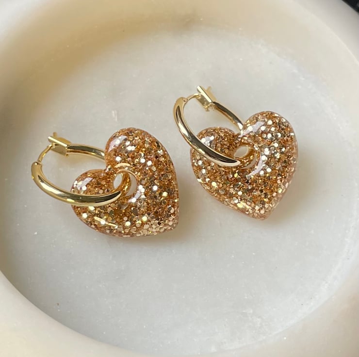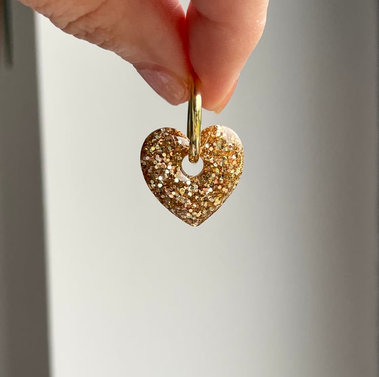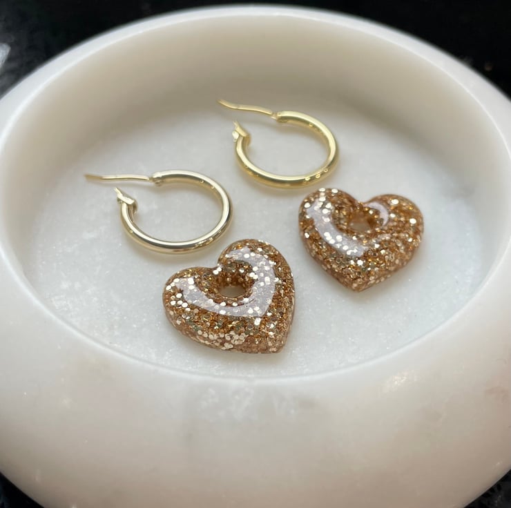 Gold-plated hoops with handmade resin charm. Lightweight and comfortable to wear.