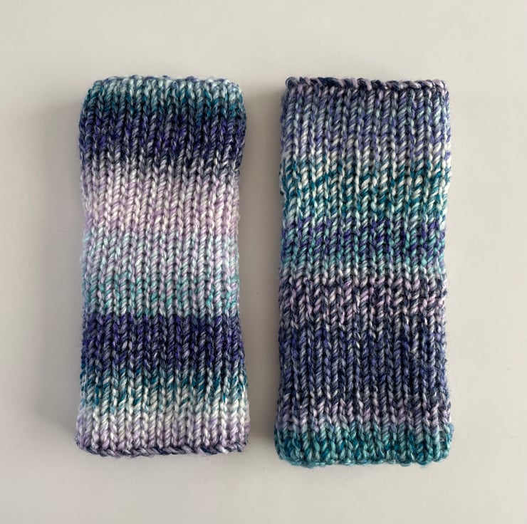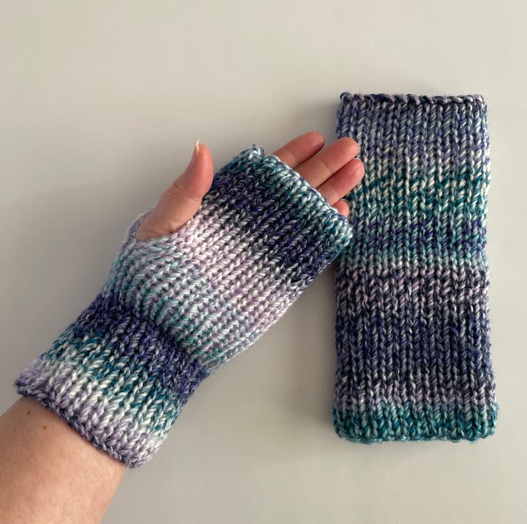 These fingerless gloves are made from acrylic yarn and double layered, so they will keep your hands warm and cosy.