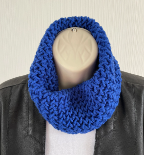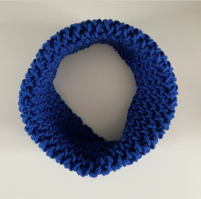 The close fitting neck warmer is made from 100% Acrylic yarn. The pattern does allow some stretch, and after use or washing it can simply be reshaped ready for the next time you want to use it.