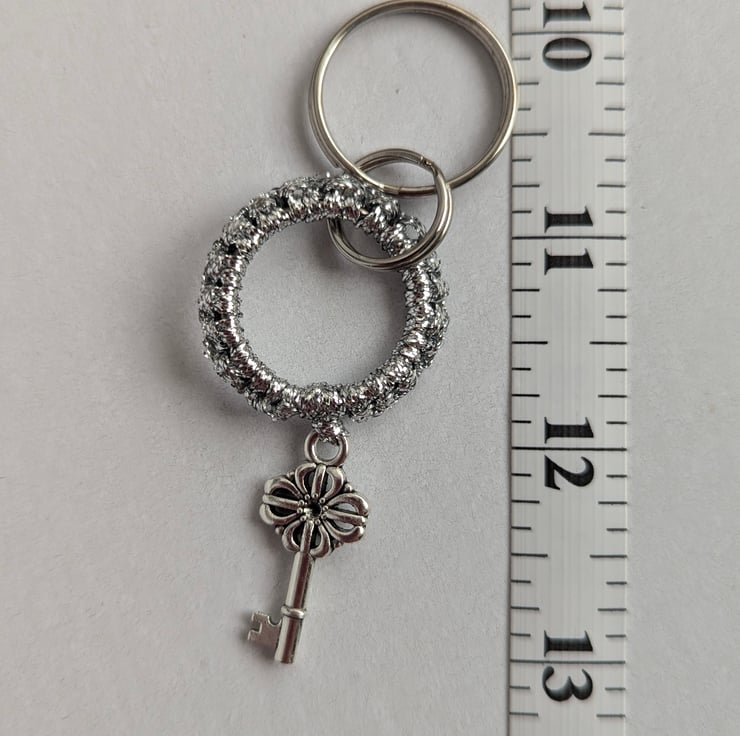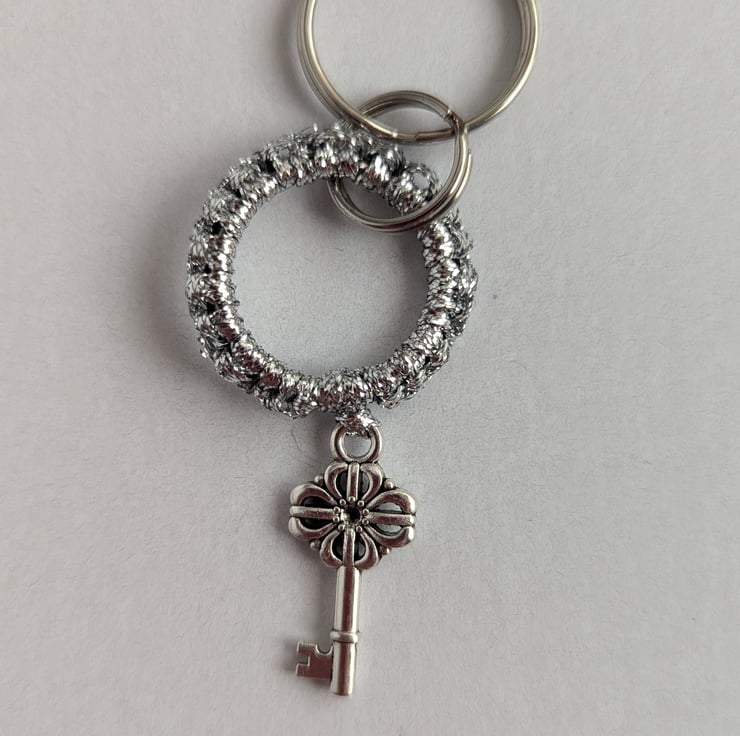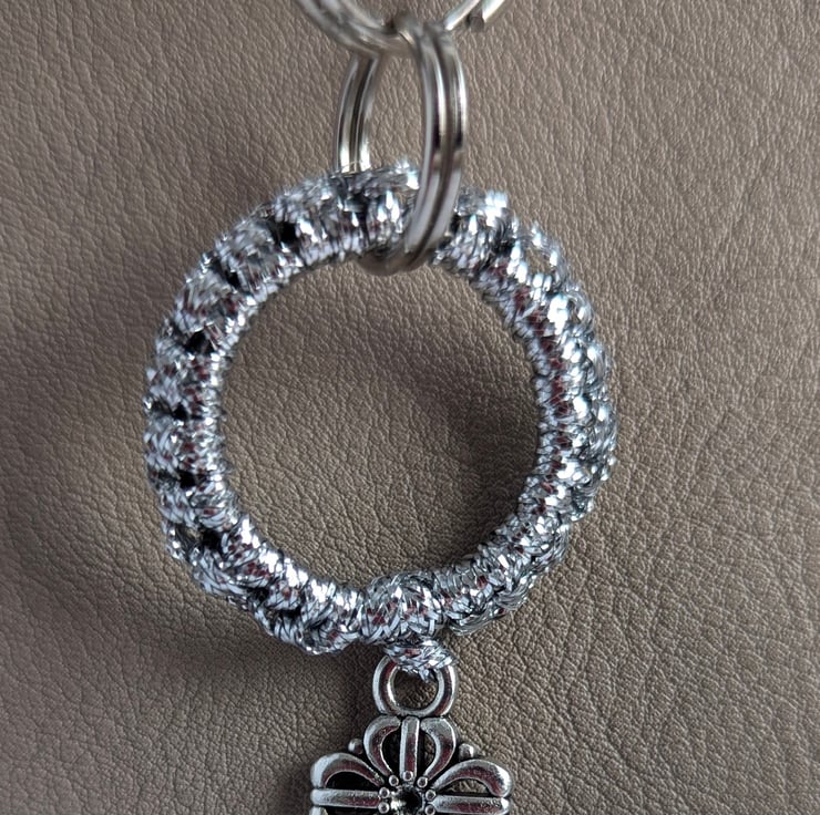 A beautifully handcrafted macrame-style keychain keyring, showcasing intricate knot patterns .This bohemian-inspired design combines elegance with functionality, offering a lightweight and sturdy accessory. The keyring is attached to a polished metal loop, ensuring secure key attachment, while the macrame adds a touch of artisanal charm. Perfect for personal use, gifts, or as a stylish statement piece for bags or purses.