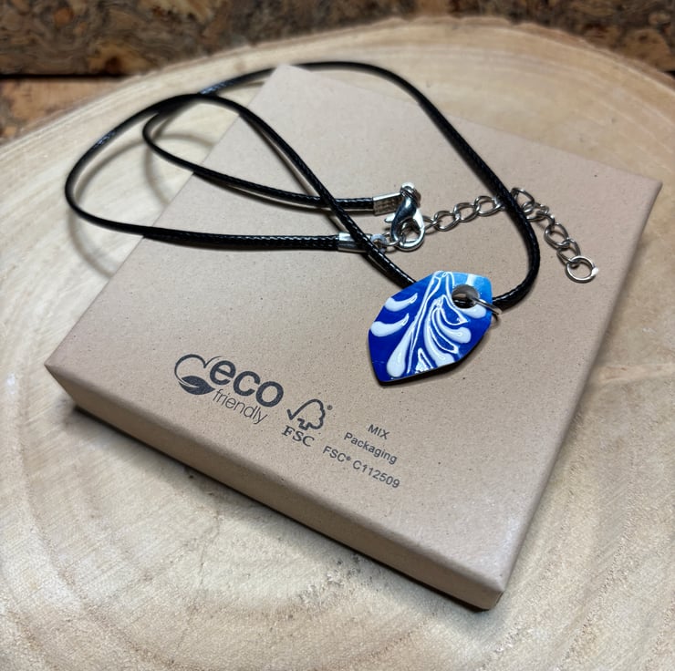 Striking Blue & White Pendant Necklace, Unique Eco Friendly Gifts, Christmas.