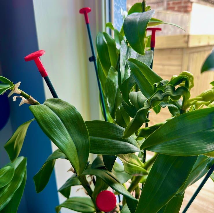 Designed to fit and grip onto 5mm plant stakes as shown in the photographs.