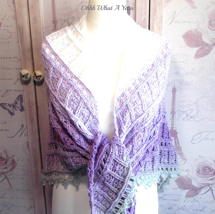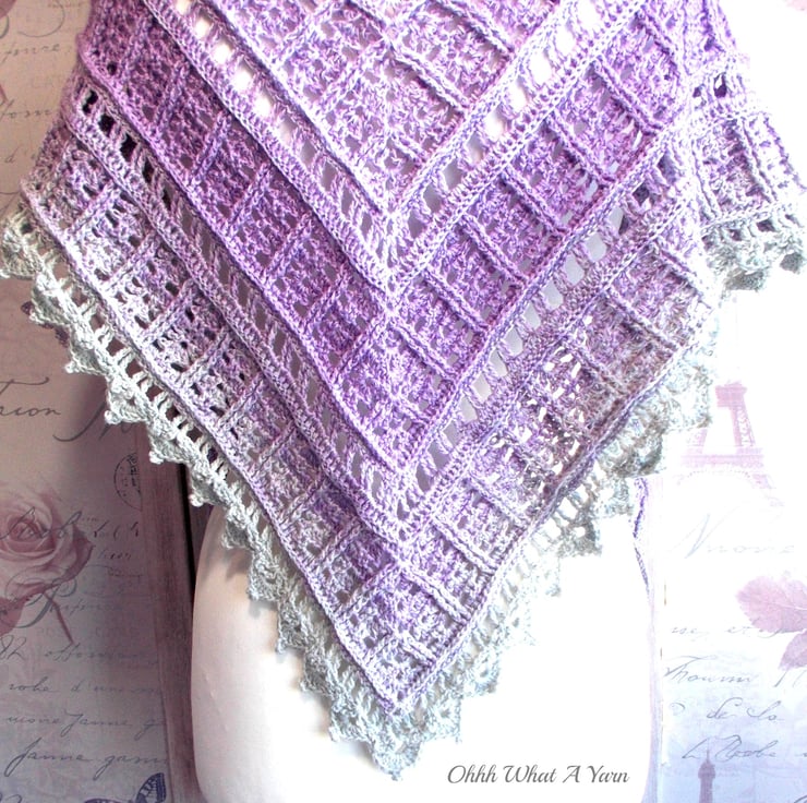 It has a beautiful combination of stitches including shells, ridges and mesh and a gorgeous picot edging to finish it off.