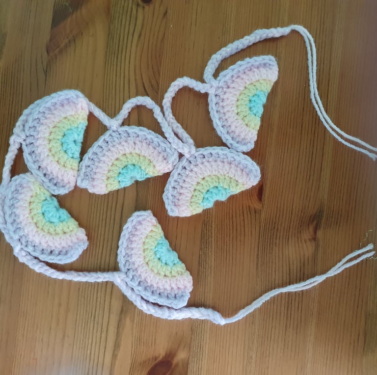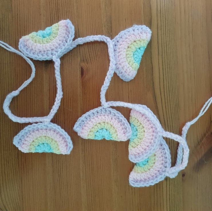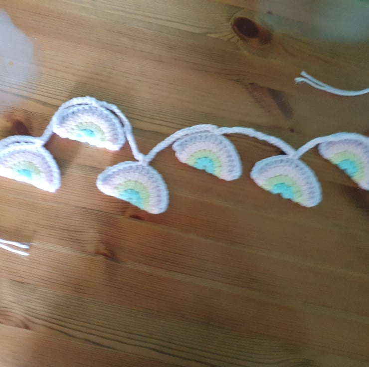 Handcrocheted rainbow garland. Perfect for a nursery or playroom.