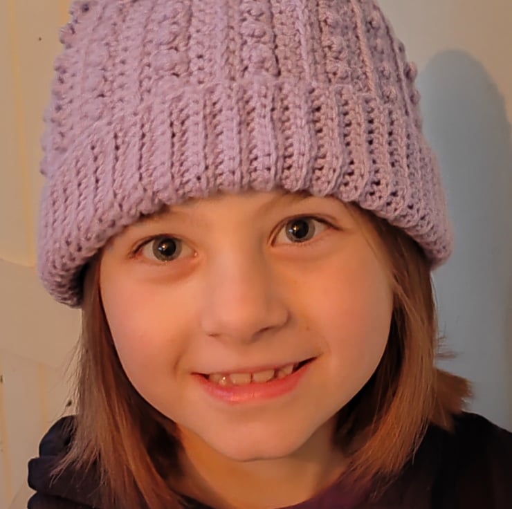 The Beanie is worked as a flat rectangular piece that includes the ribbing. There is only one slip stitch seam required to close the beanie. The advantage of this, is that this hat requires NO SEWING (except for weaving in your 2 ends)! The textured head section is an easy to follow 6 row pattern repeat.