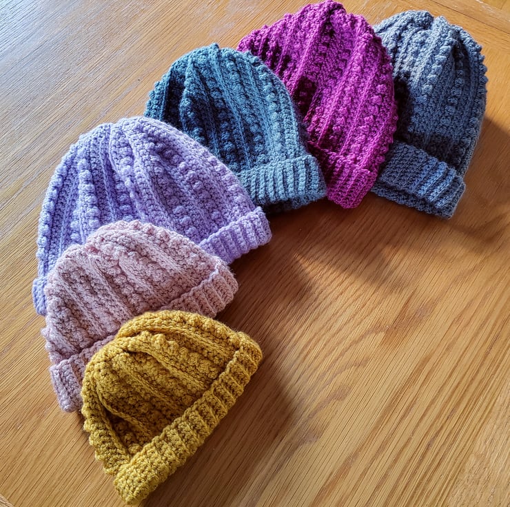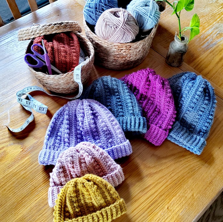 This design is versatile so you could have fun with using variegated yarn colours, you could also add a pompom if you would like.