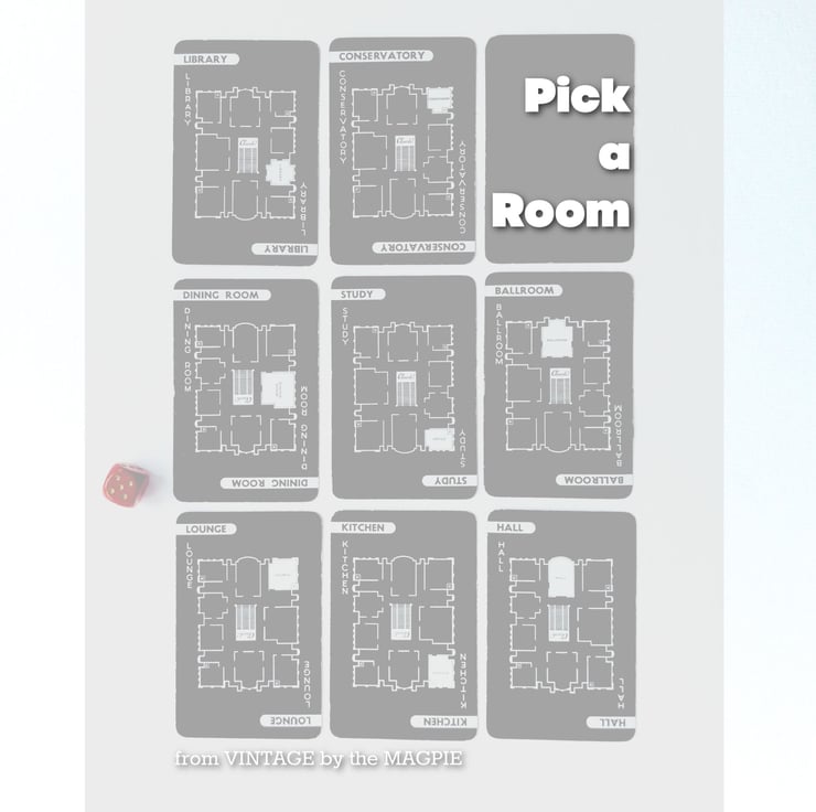 SOLD OUT -Miss Scarlet, Professor Plum Revolver, Candlestick, Billiard Room,Study.