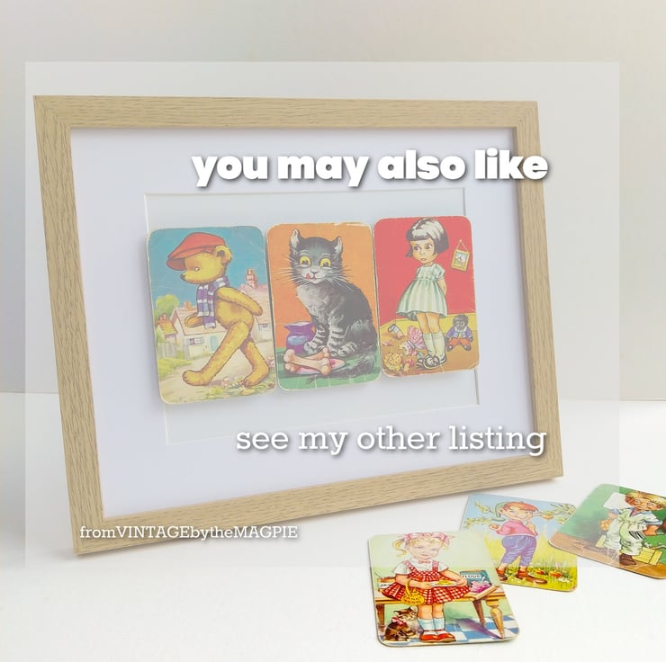 These are the original cards from a well used 1950s edition of the board game.They do show signs of wear and age, this adds to the overall charm of the finished art.