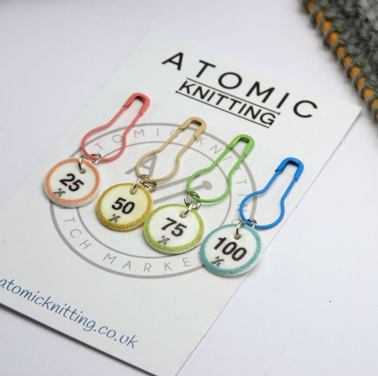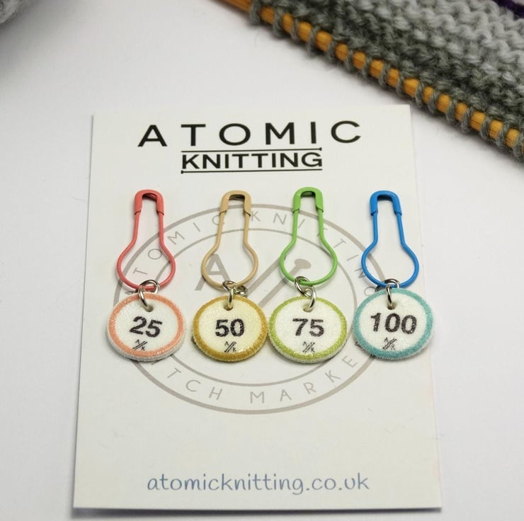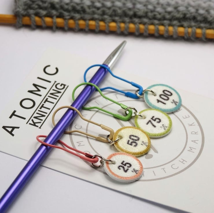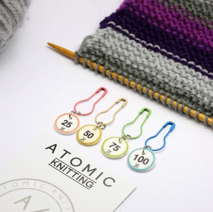 Use Atomic Knitting Stitch Markers on knitting and crochet projects as reminders to check the pattern or change stitch. Use them to keep track of cast on stitches and stitch counts.