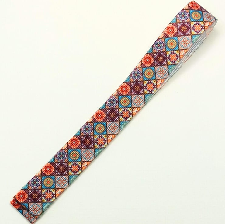Single magnetic pattern marker, for keeping your place in a paper pattern. With a boho tile pattern ribbon - ribbon width 22mm. Ideal for following knitting, crochet, embroidery patterns and pattern grid maps.