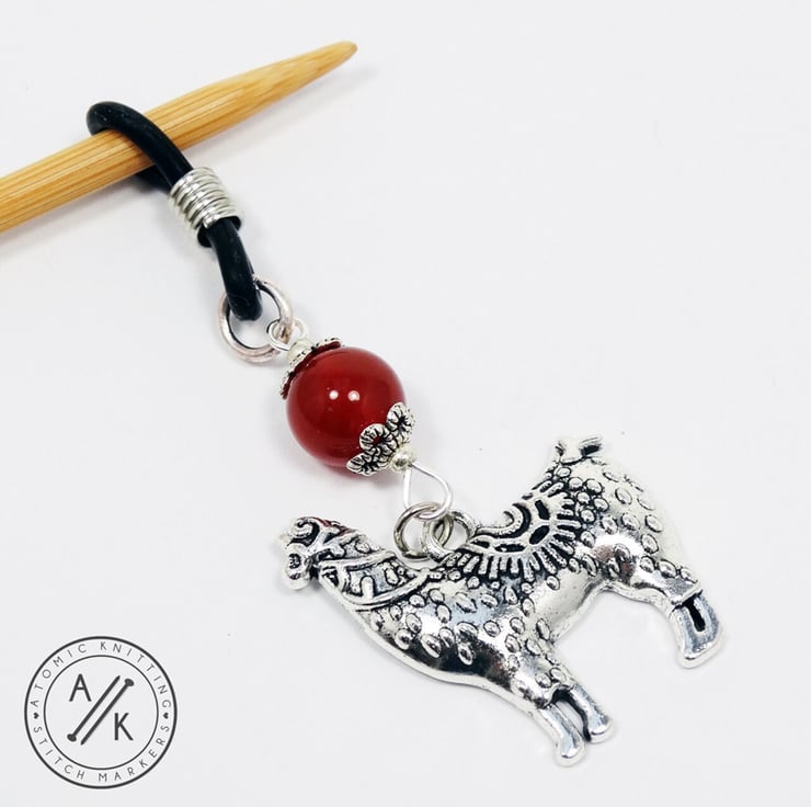 Knitting Needle Holder - Carnelian & Llama- Knitting Needle Hugger Minder up to