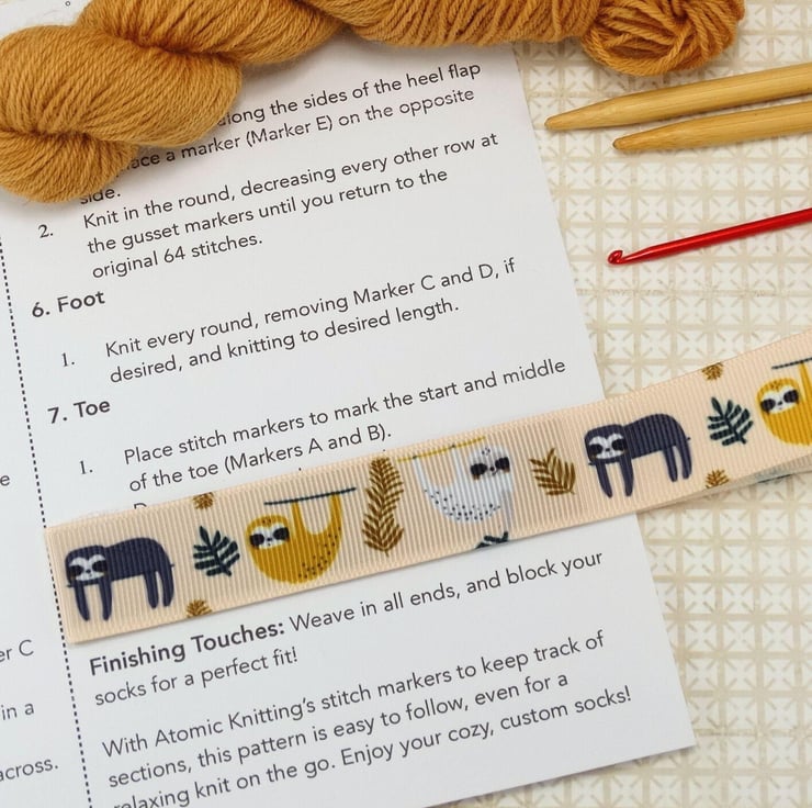 Single magnetic pattern marker, for keeping your place in a paper pattern. With a sloth pattern ribbon - ribbon width 25mm.