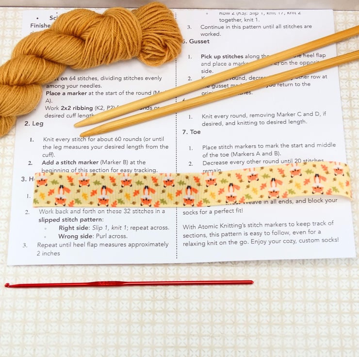 This single marker is used with a pattern or book by wrapping around the page and then used by sliding the marker up and down the page. The marker can also be left in place on your pattern, ready for your next knitting or crochet time.
